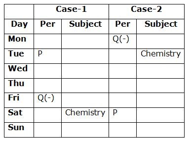 • Three persons are attend the exams between the one who attends Chemistry exam and P and both of them does not attend the exam on first or last day of the week. Q, she attends the exam immediately before the one who attends Chemistry exam.