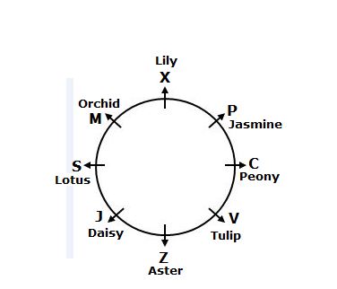 - The one who likes Lotus sits third to the left of P, who is not an immediate neighbour of both S and Z. The one who likes Peony sits opposite to the one who likes Lotus.