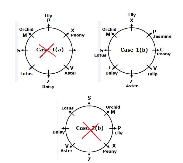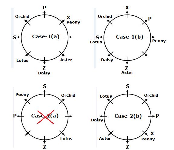 - Two persons are sitting between the one who likes Daisy and X, who is an immediate neighbour of P. The one who likes Aster sits immediate left of the one who likes Daisy. X does not like Orchid and does not sit opposite to S.