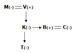 6) If K#V%M@B%C and T#K, then how T is related to M?