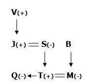 7) If V$J%S@Q&T%M#B, then how M is related to V?