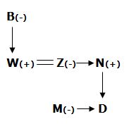 8) If B@W%Z&N$D and M&D, then how W is related to M?