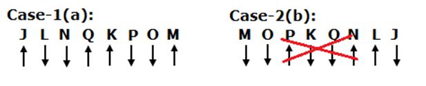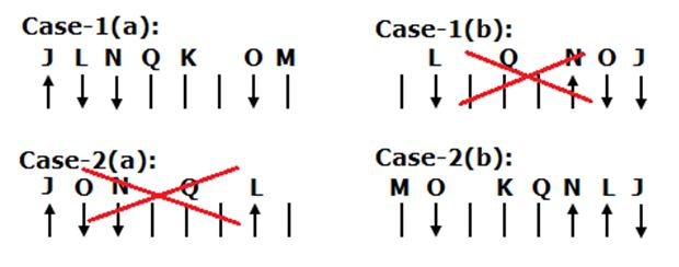Eight persons J, K, L, M, N, O, P and Q are sitting in a straight line in such a way that some of them are facing north while some of them are facing south but not necessary in the same order.