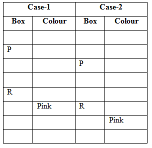 - Three boxes are kept between the box P and the Pink coloured box, none of the boxes were kept at either the bottommost or the topmost position. The box P does not kept below the Pink coloured box.