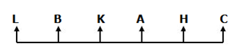 7) A, B, C, H, K, L are sitting in a row facing north. Who sits second to the left of H?