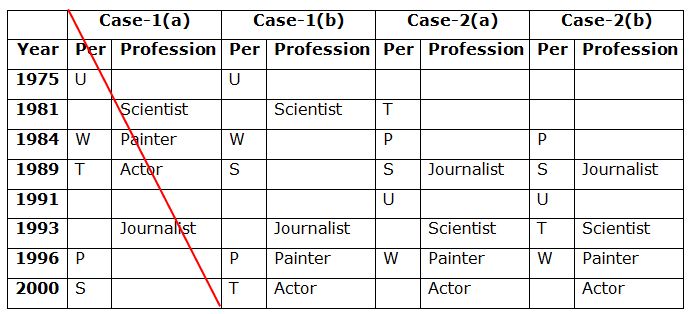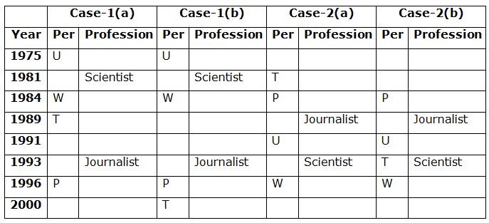 - The one who is a Scientist was born immediately after U and both of them are born in odd numbered years. As many persons born before the Scientist is same as the persons born after P. Only one person was born between T and the one who is a Journalist.