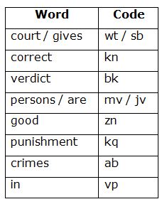 ‘court gives correct verdict’ is coded as ‘wt kn sb bk’,