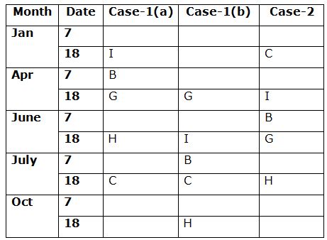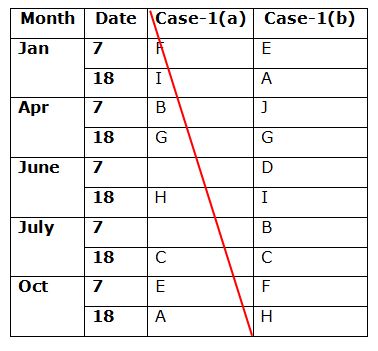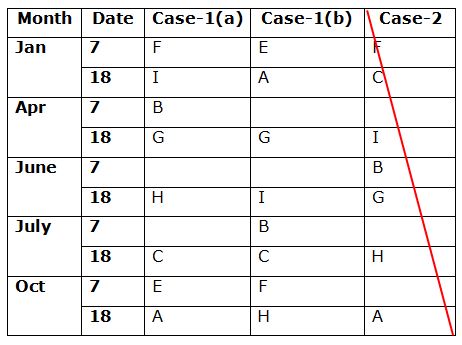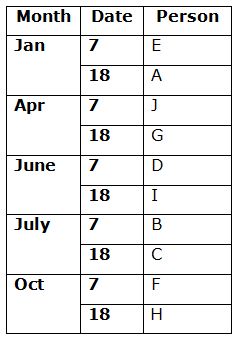 Ten persons A, B, C, D, E, F, G, H, I and J are born in five different months viz., January, April, June, July and October of the same year. They all are born in two different dates 7th and 18th of the given months. No two persons are born in the same date of the same month.