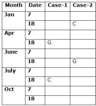 - Three persons are born between C and G, who was born in even numbered date in the month which has 30 days. C is not the youngest person.