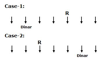 • Only two persons are sitting between the one who likes Dinar and R. R sits third from the either ends of the row.