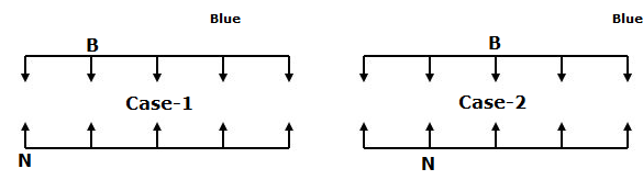 वह व्यक्ति जो नीला पसंद करता है, वह व्यक्ति N के दाईं ओर बैठता है। केवल एक व्यक्ति B और नीला पसंद करने वाले व्यक्ति के बीच बैठता है।