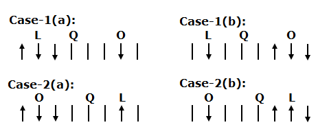 - Q, L के बाईं ओर दूसरा बैठता है, जो पंक्ति के दोनों छोरो से दूसरा बैठता है। Q और O के बीच केवल दो व्यक्ति बैठे हैं, जो पंक्ति के अंतिम छोर पर नहीं बैठते हैं। O का सामना उत्तर की ओर नहीं है।