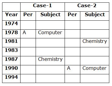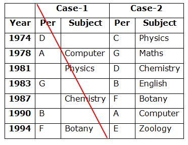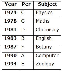 Seven persons A, B, C, D, E, F and G are born in different years viz., 1974, 1978, 1981, 1983, 1987, 1990 and 1994 but not necessary in the same order. Each of them likes different subjects viz., English, Maths, Computer, Physics, Botany, Zoology and Chemistry but not necessary in the same order. Their ages were calculated based on the year 2019.