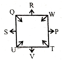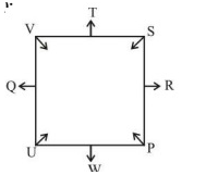 Eight friends P, Q, R, S, T, U, V and W are sitting around a square table in such a way that four of them sit at four corners of the square while the remaining four sits at the middle of each of the four sides. Those who sit at the four corners face the centre and those who sit at the middle of the side face outside.
