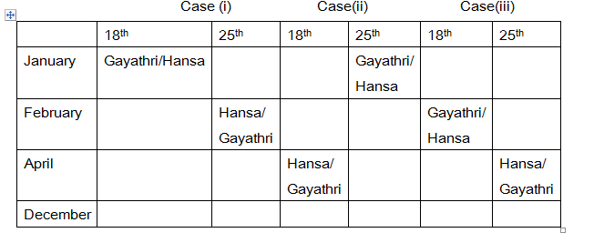 i). Only two persons born between Hansa and Gayathri, both of them was not born on December.