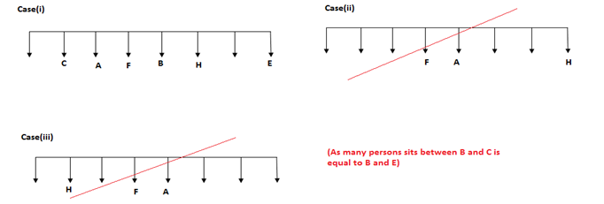 iii). As many persons sits between C and B is equal to sits between B and E.