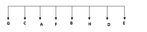A, B, C, D, E, F, G and H are the eight persons sitting in a linear row facing south.