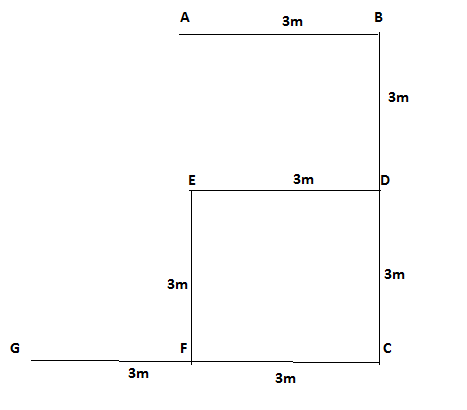 A stands 3 meter west of B, who stands 6 meter north of C. D stands 3 meter east of E, who stands 3 meter north of F. G stands 6 meter west of C, who stands 3 meter east of F.