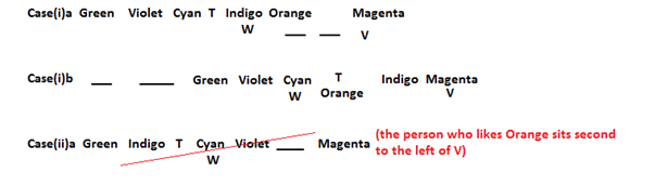 vii). The person who sits second to the left of V is the person who likes Orange.