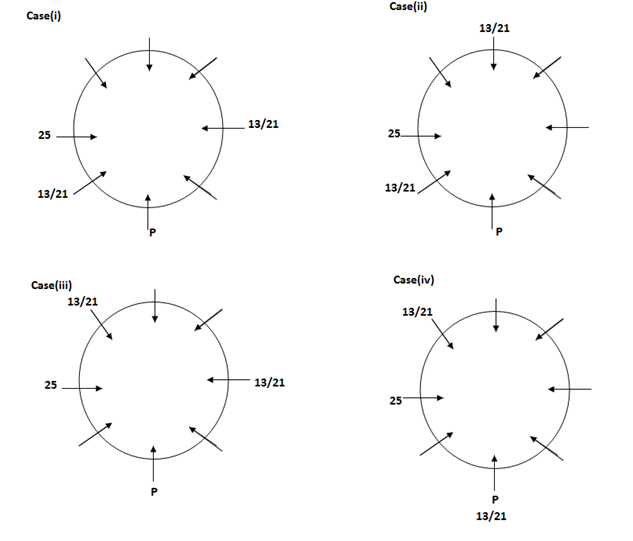 ii). Only two person sits between the person who age 13 and 21, either one of them sits to the immediate neighbour of the person whose age is 25 years.