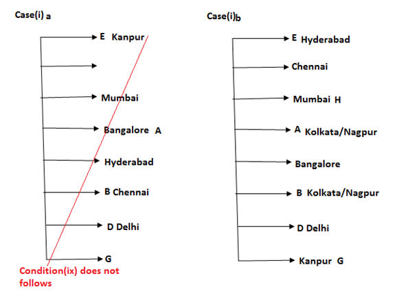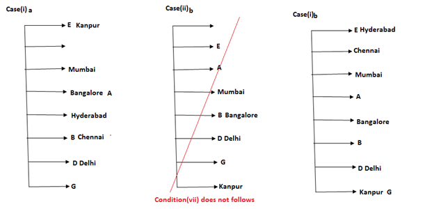 vii).More than two person sits between the B and H, who is not an immediate neighbour of the person who was Hyderabad.