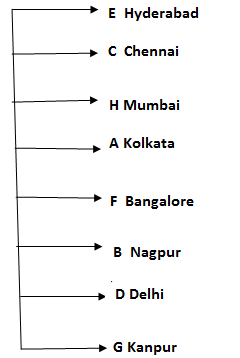 A, B, C, D, E,F, G and H are the eight persons sits together facing east. Each of them was from different cities namely Delhi, Chennai, Kolkata, Kanpur, Bangalore, Hyderabad, Nagpur and Mumbai. They all not necessary to be in the same order.