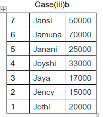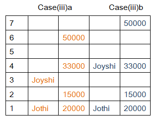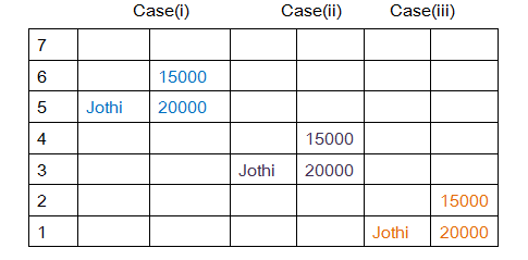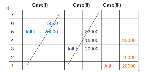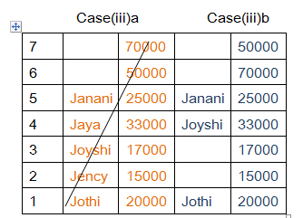 ii). Janani’s salary is five thousand more than Jothi, who lives immediately below the person who earns lowest salary. (Janani –> 25000)