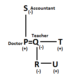 P, Q, R, S, T and U are the six members in a family. There are three generations and one married couple are in the family. They all belong to different profession. S is the mother of P, who is the Doctor. Q is the mother of R, who was the only daughter of Doctor. T is the Uncle of U, whose father has no siblings. The elder most person of family was Accountant. U’s mother was Teacher.