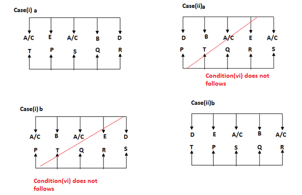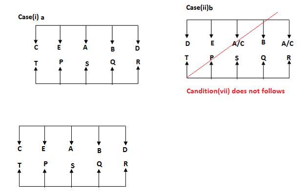 Ten peoples are sitting in two parallel rows facing each other. A, B, C, D and E are the five person facing south. P, Q, R, S and T are the five persons facing North. They are not necessary to be in the same order.