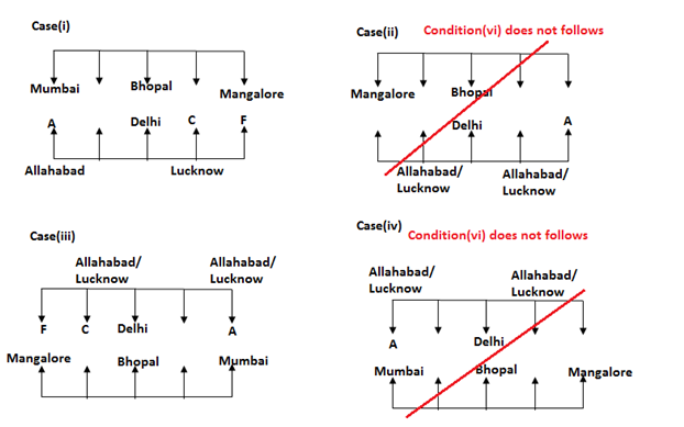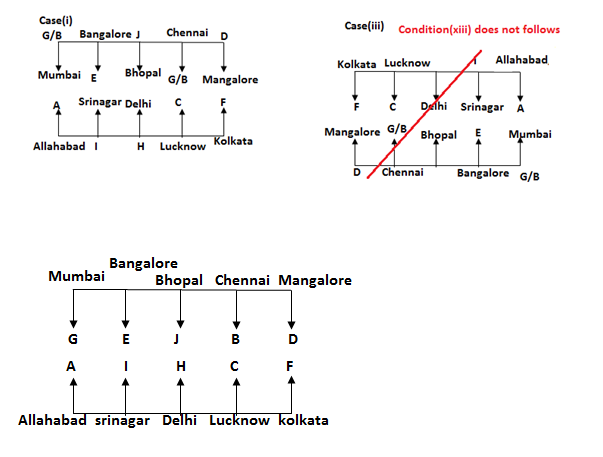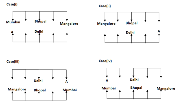 iv). Only one person sits between the persons from Mumbai and Bhopal.