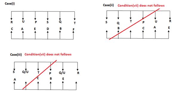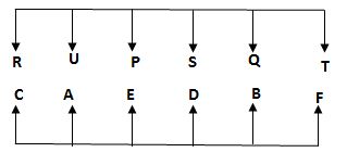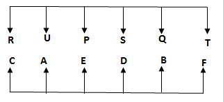 Twelve people are sitting in two parallel rows facing each other. In the Row I- A, B, C, D, E and F are facing north, while in Row II- P, Q, R, S, T and U are facing south. All the information is not necessary to be in the same order.