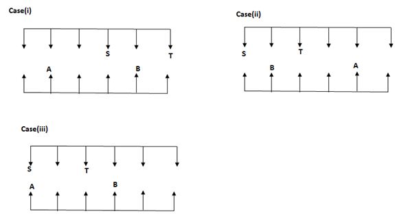 ii). S sits second to the right of T and either of them sits at the extreme end of the row.