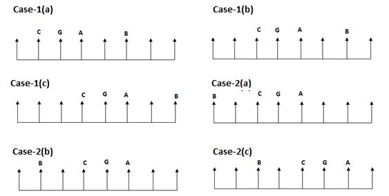 A sits second to the right of C, neither of them sits at extreme end of the row. Only two people sits between G and B. G is an immediate neighbour of C and A. Only one person sits between H and F, who is an immediate neighbour of neither D nor E.  E is not an immediate neighbour of D, who does not sits to the left of C. A does not sit immediate left of D.