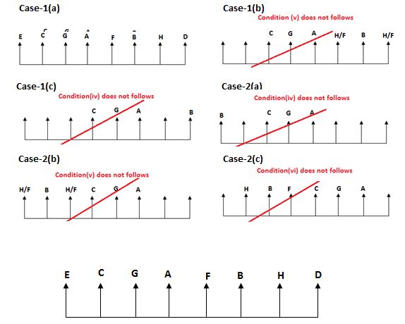 iv). Only one person sits between H and F, who is an immediate neighbour of neither D nor E.