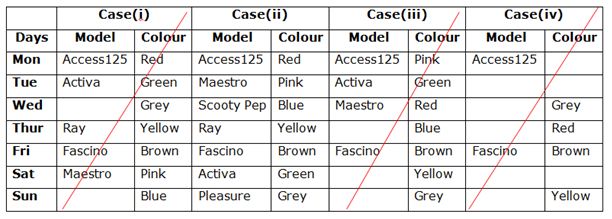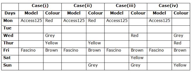 v). Rahim does not use Red coloured bike any of the days after using Yellow colourd bike.