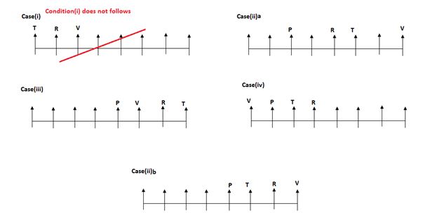 ii). Only one people sits between T and V, either one of them sits at extreme end of the table.