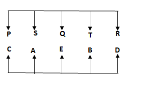 Ten people are sitting in two parallel rows facing each other. In Row I- P, Q, R, S and T are facing south. In Row II- A, B, C, D and E are facing north. They all are not necessary to be in the same order.
