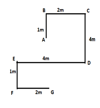 A stands 1 metre south of B. C stands 4 metres north of D. G stands 2 metres east of F, who stands 1 metre south of E. B stands 2 metres west of C. E stands 4 metres west of D.