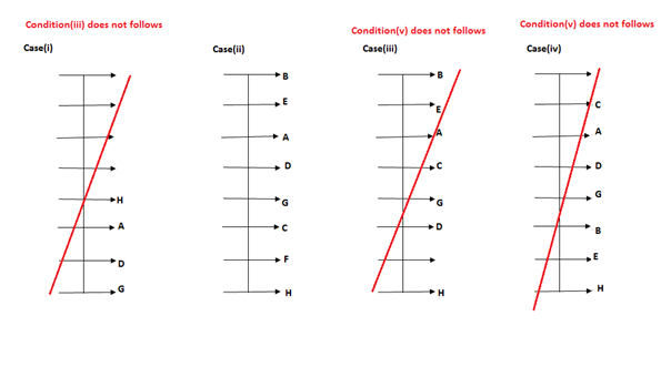 Eight people A, B, C, D, E, F, G and H are sitting in a linear table all of them were facing towards East but not necessary to be in the same order.