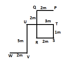 P stands 2m east of Q, who stands 2m north of R. T stands 1m north of S. R stands 2m west of S. W stands 2m west of V. U stands 5m north of V.  T stands 3m east of U.