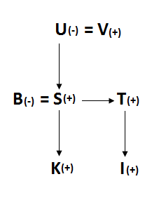 B is wife of S, who is the only brother of T. I is son of T. V is father of S. K is grandson of U, who is wife of V. K is not a son of T. V has no daughters.