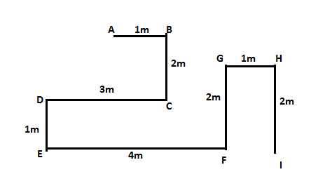 H stands  north of I. G stands 1m west of H. E stands 4m west of F. D stands 1m north of E. B stands 1m east of A. C stands 2m south of B. I stands East of F. D stands 3m west of C.  G stands 2m north of F.