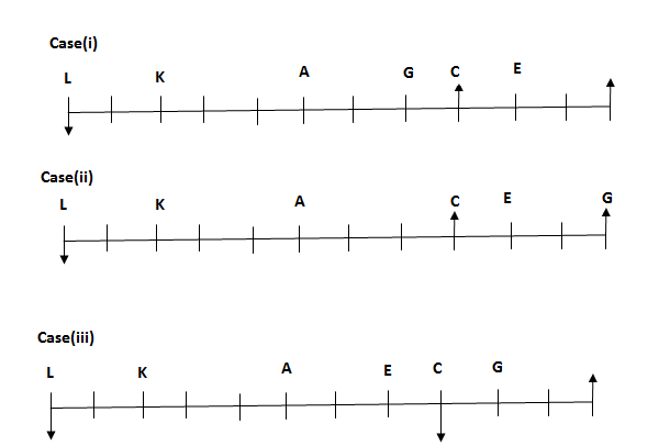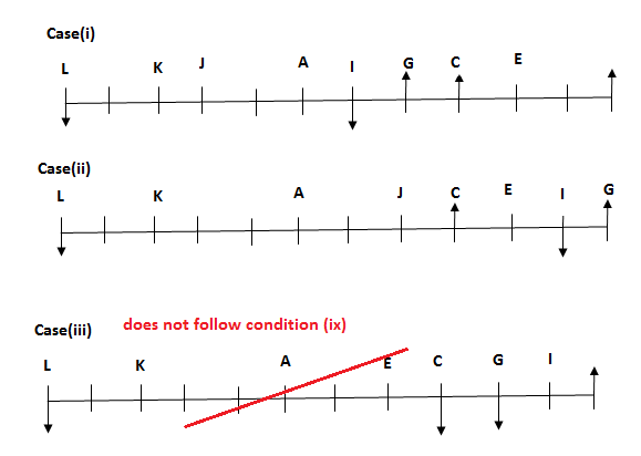 ii). K sits second to the left of L.