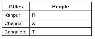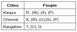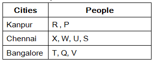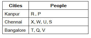 Nine people P, Q, R, S, T, U, V, W and X are from three different cities namely Kanpur, Chennai and Bangalore. But they are necessary to be in the same order. Not more than four and not less than two members are from same city.