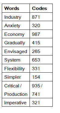 10). What is the code for the word “flexibility system”?