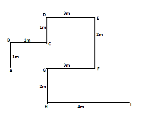 A stands 1m south of B, who stands 2m west of C. I stand 4m east of H. G stands 3m west F. E stands 2m north of F. D stands 3m west of E. D stands 1m north of C. H stands 2m south of G.