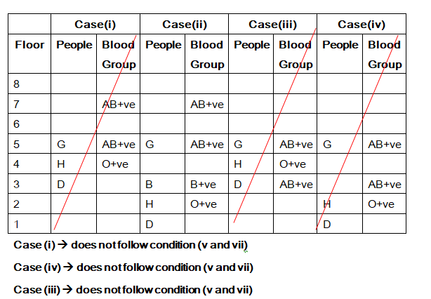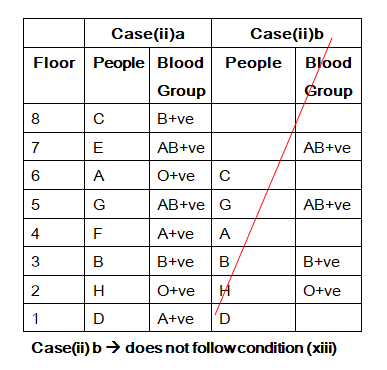 xiii). The person who has O+ve does not live in top most floor. F does not live in top most floor.