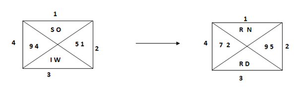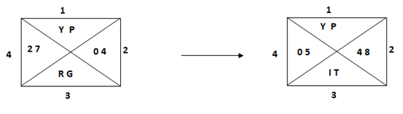 1). In triangle 1= If the code of two letters are odd as per English alphabets. Then both the letters should be changed to its previous letter.