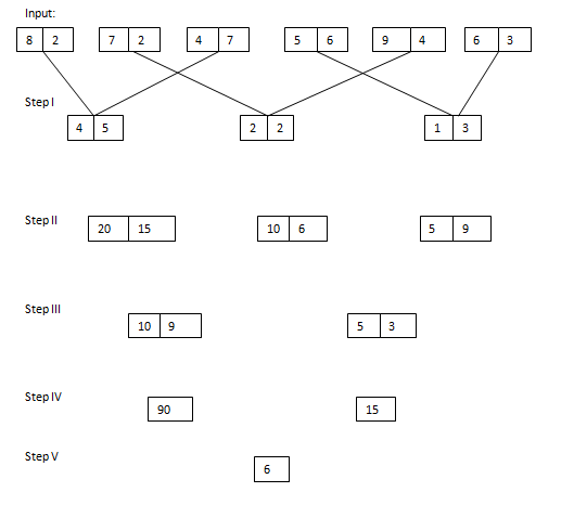 Step V: By dividing biggest number to the smallest number in previous steps will give Step V.