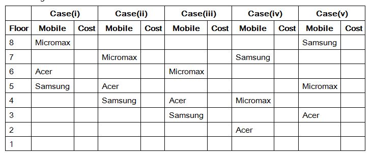 Eight people living in eight different floors, they all have different mobiles of different costs. The mobiles are Acer, Lenovo, Asus, Samsung, Oppo, Micromax, Lava and Vivo. All the information is not necessary to be in the same order.
